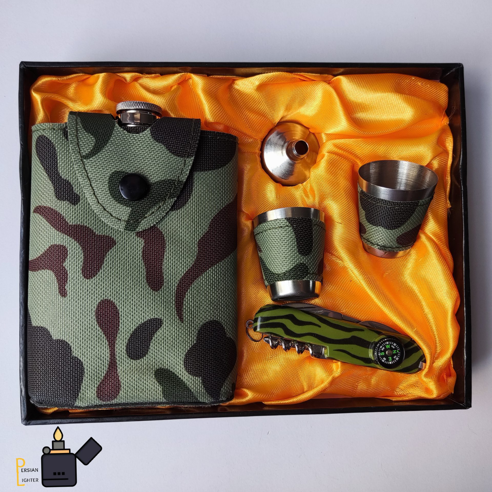 یک عدد بطری جیبی به روکش پارچه ای جاکمربندی دار